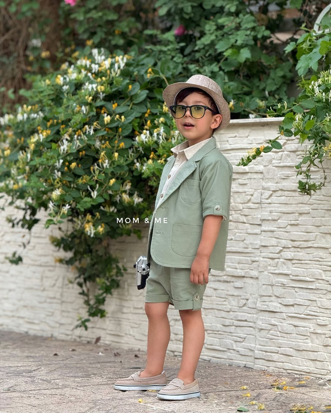 ست شامل کت آستین کوتاه ، شلوارک ، پیراهن جنس کار لینن درجه یک و با طراحی خاص منحصر بفرد مسیح کیدز