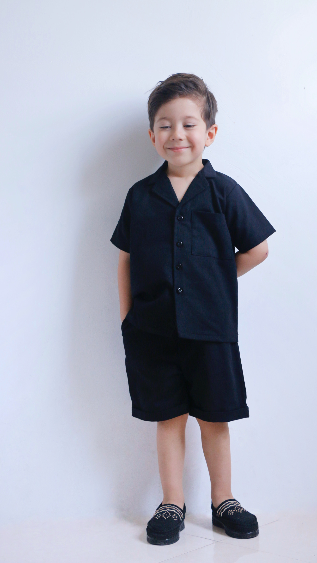 ست لباس مشکی لینن بچگانه یقه انگلیسی