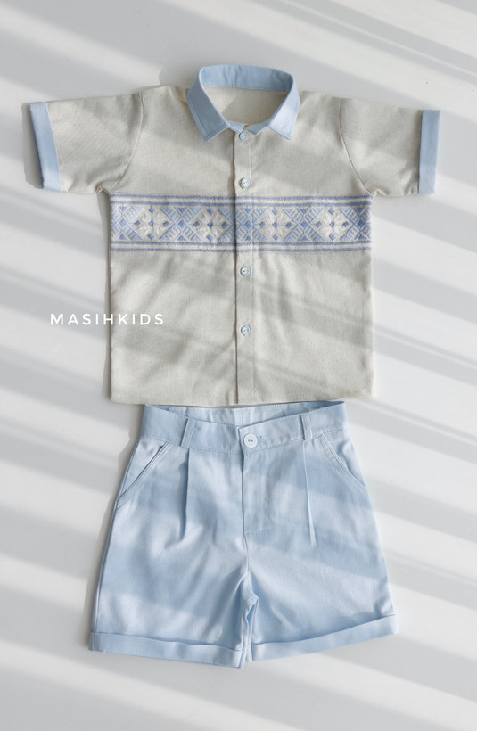 ست لینن سوزندوزی بچگانه شامل بلوز آستین کوتاه وشلوارک چنس کار لینن درجه یک کار سوزندوزی سفارش تک رنگ قابل سفارش از ۱سال تا ۷سال
